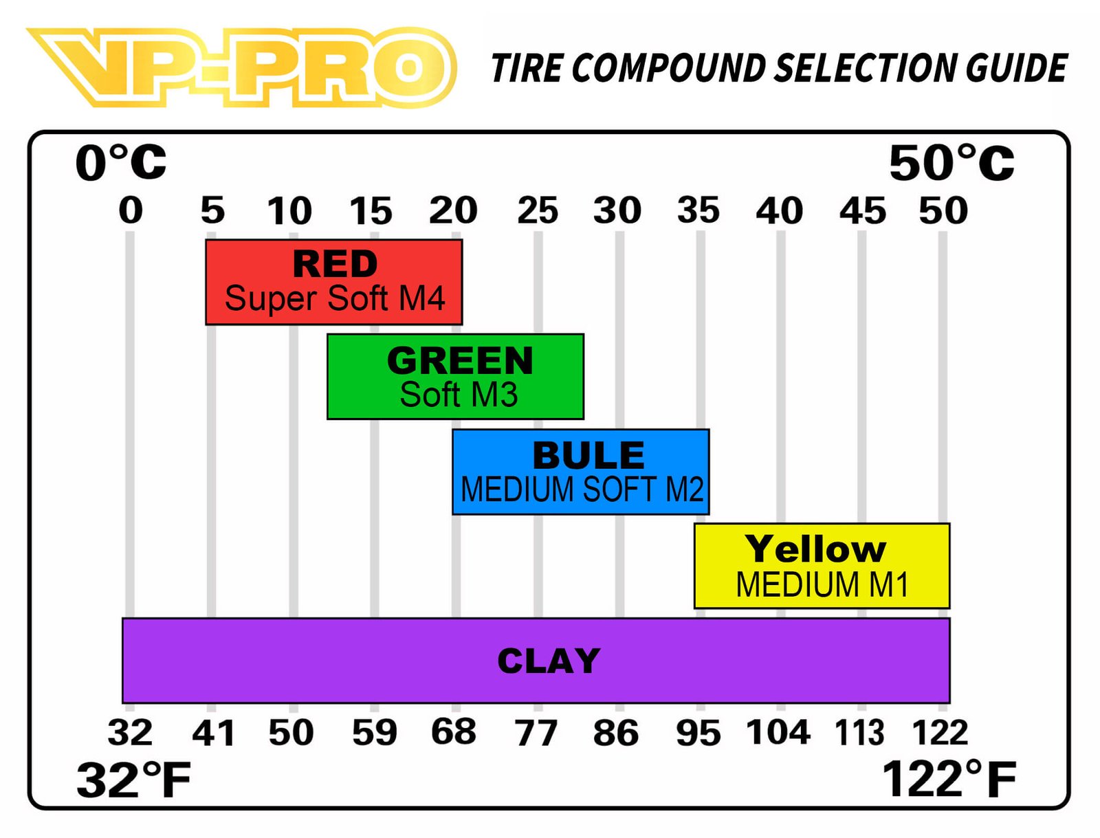 | Tire Compound | Purple (Clay), Yellow (Medium M1), Blue (Medium Soft M2), Green (Soft M3), Red (Super Soft M4) |